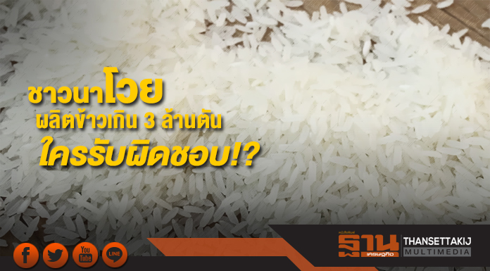 ชาวนาโวย ผลิตข้าวเกิน 3 ล้านตัน ใครรับผิดชอบ หวั่นข้าวล้นตลาด กรมการข้าวแจง กลัวมีภัยพิบัติ ยอดไม่ถึงเป้า