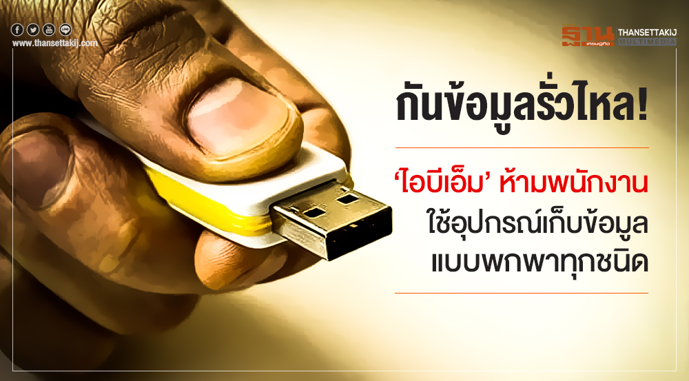 'ไอบีเอ็ม' ห้ามพนักงานใช้อุปกรณ์เก็บข้อมูลแบบพกพา ไม่ว่าจะเป็น ยูเอสบีสติ๊ก, เอสดีการ์ด หรือแฟลชไดร์ฟ เพื่อป้องกันความเสี่ยงที่อาจเกิดขึ้นได้ หากพนักงานทำอุปกรณ์ดังกล่าวหายหรือนำข้อมูลไปใช้ในทางที่ผิด ในกรณีที่พนักงานจำเป็นต้องนำข้อมูลติดตัวไปด้วยหรือใช้ข้อมูลนอกที่ทำงาน ...