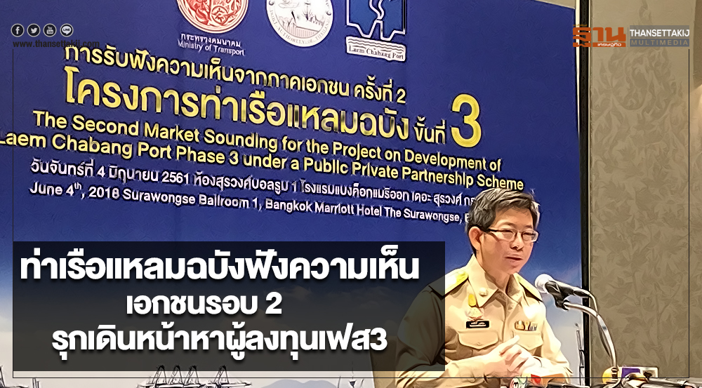 ท่าเรือแหลมฉบังจัดรับฟังความเห็นเอกชนรอบ 2 เดินหน้าหาผู้ลงทุนพัฒนาท่าเรือแหลมฉบัง เฟส 3 เพิ่มศักยภาพขนส่งทางน้ำรองรับ EEC