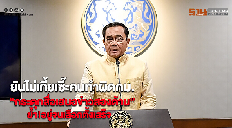 “บิ๊กตู่”ยันไม่เกี้ยเซี๊ะคนทำผิดกม.“กระตุกสื่อเสนอข่าวสองด้าน”ย้ำ!อยู่จนเลือกตั้งเสร็จ