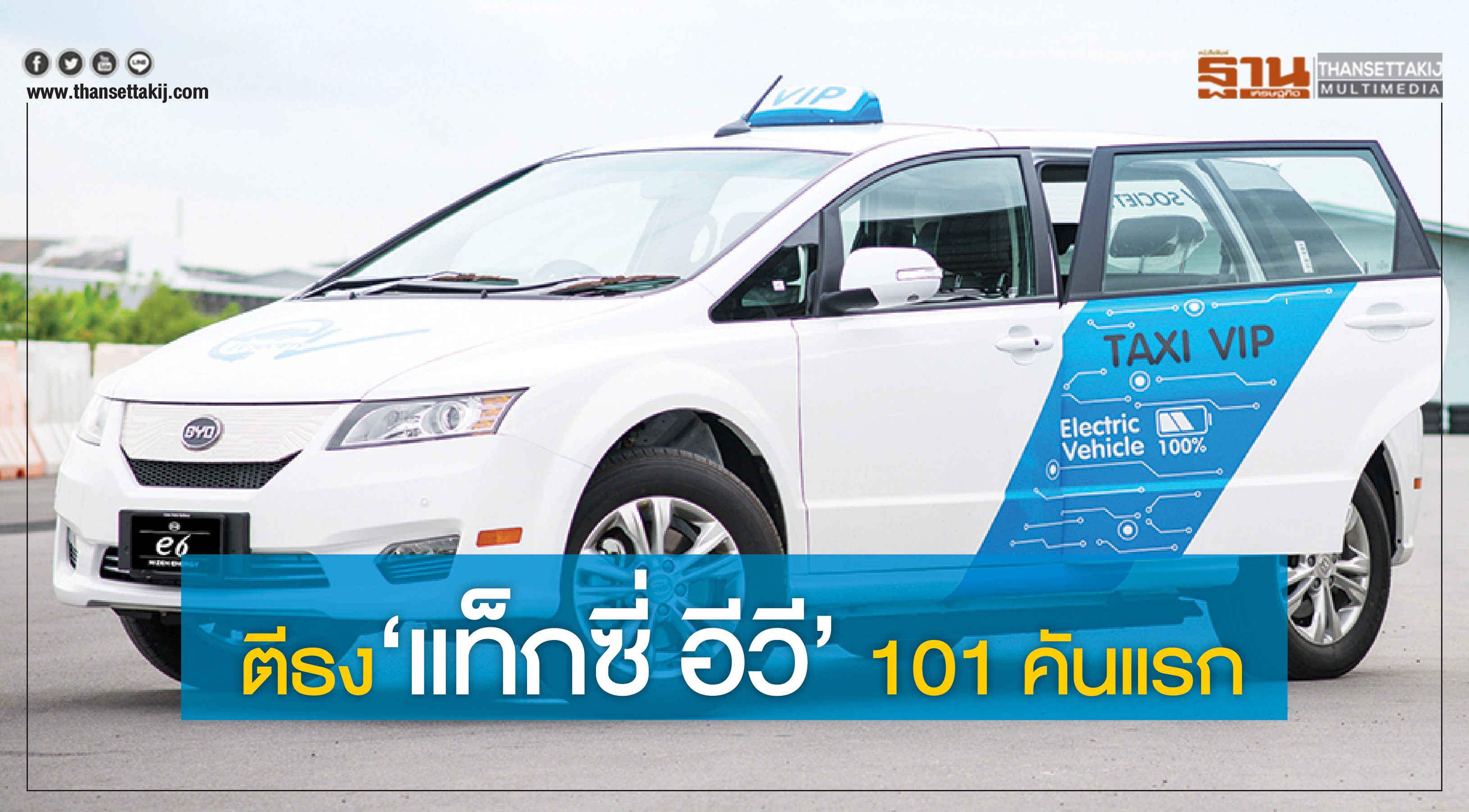 มาแล้ว “แท็กซี่ พลังไฟฟ้า” พร้อมให้บริการล็อตแรก 101 คันเริ่ม 9 กันยายนนี้ ที่สนามบินสุวรรณภูมิ ด้วยอัตราค่าบริการ 2 กิโลเมตรแรก 150 บาท ถัดไป คิดกิโลเมตรละ 16 บาท