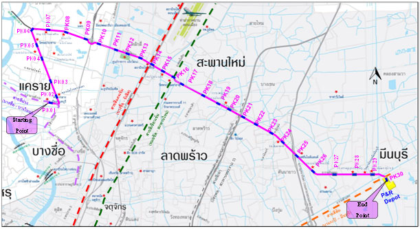 “ที่ผ่านมารฟม.ได้ดำเนินการสำรวจอสังหาริมทรัพย์และจัดกรรมสิทธิ์ที่ดินเพื่อก่อสร้างรถไฟฟ้าสายดังกล่าวเมื่อเดือนพ.ย. 2559 และมีการแก้ไขแบบแนวเขตล่าสุดเมื่อ 18 ม.ค. 2561 มีที่ดินอยู่ในแนวเขตเวนคืนจำนวน 54 แปลง สิ่งปลูกสร้าง 613 หลัง มีผู้ถูกเวนคืนมาตกลงทำสัญญาแล้ว 203 แปลง และสิ่งปลูกสร้าง 278 หลัง และรฟม.ได้วางเงินค่าทดแทนแล้ว 18 แปลง สิ่งปลูกสร้าง 22 หลัง เหลือผู้ถูกเวนคืนที่ยังไม่มาตกลงทำสัญญา 313แปลง และสิ่งปลูกสร้าง 313 หลัง และมีบางพื้นที่อยู่ระหว่างการพิจารณาแก้ไขปัญหาการร้องเรียนที่ยังไม่ได้ข้อยุติในเรื่องแนวทางเขตทางหลายบริเวณซึ่งรฟม.ไม่สามารถดำเนินการให้แล้วเสร็จสมบูรณ์ได้ทันภายในกำหนดระยะเวลา”