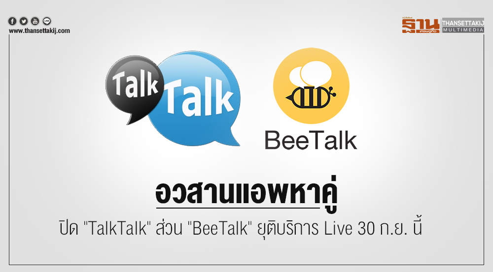 1.ยุติการให้บริการทั้งหมดของแฟลตฟอร์มรวมทั้งแอพพลิเคชัน TalkTalk และยกเลิกช่องทางการติดต่อสื่อสาร ในวันอาทิตย์ที่ 30 ก.ย. 2561 , 2.ยุติการให้บริการเฉพาะฟังชั่น Live ของแอพพลิเคชัน BeeTalk ในวันอาทิตย์ที่ 30 ก.ย. 2561 ส่วนฟังก์ชั่นการใช้งานอื่น ๆ ยังคงให้บริการตามปกติ โดยระหว่างนี้ไปจนถึงวันที่ยุติการบริการ ท่านยังสามารถใช้บริการและติดต่อทีมงานได้ตามปกติทางอินบ็อกของเพจ BeeTalk Thailand