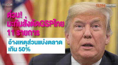 ด่วน! สหรัฐฯ สั่งตัด GSP ไทย 11 รายการ อ้างส่วนแบ่งตลาดเกิน 50%