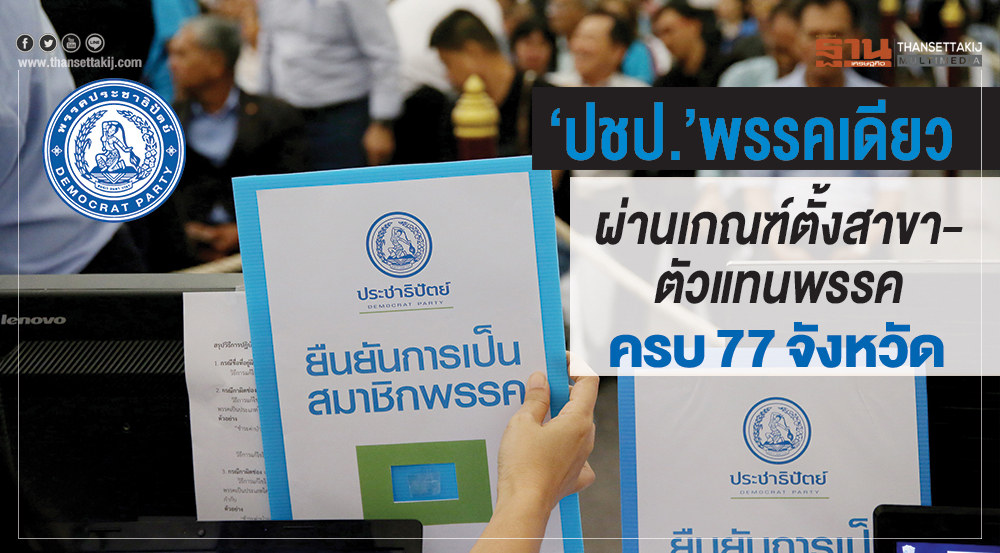 "ปชป." พรรคเดียวผ่านเกณฑ์ตั้งสาขา-ตัวแทนพรรค ครบ 77 จังหวัด