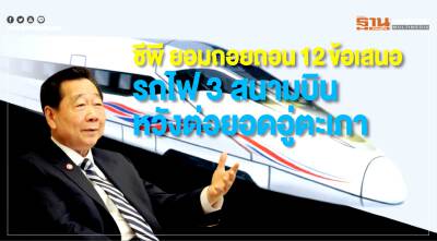 'ซีพี' อ่อนข้อยอมถอย 12 ข้อเสนอนอกกรอบทีโออาร์ หวังต่อยอดชิงสนามบินอู่ตะเภา ... 'วรวุฒิ' เผย "จีน-ญี่ปุ่น" หวั่น! ไทยยกเลิกไฮสปีดหลังเลือกตั้ง ดีเดย์ 28 มี.ค. นี้ จบ-ไม่จบ