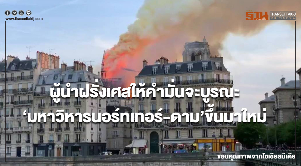 ประธานาธิบดี "เอ็มมานูเอล มาครง" ผู้นำฝรั่งเศส ให้คำมั่นว่า จะบูรณะ "มหาวิหารนอร์ทเทอร์-ดาม" ขึ้นมาใหม่ หลังจากที่ส่วนหลังคาของวิหารได้รับความเสียหายจากเหตุเพลิงไหม้ โดยประธานาธิบดีมาครงแสดงอาการโล่งใจ ว่า ช่วงเวลาที่เลวร้ายที่สุดได้ผ่านพ้นไปแล้ว เพราะสามารถป้องกันไม่ให้เพลิงลุกลามจนเผาผลาญวิหารทั้งหลังได้สำเร็จ