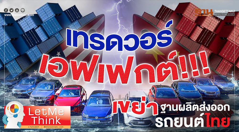 ที่น่าจับตาในเวลานี้เห็นจะเป็นอุตสาหกรรมยานยนต์ เพราะฐานการผลิตไทยเป็นผู้ผลิตยานยนต์ที่มียอดการผลิตปี 2561 อยู่ลำดับที่ 10 ของโลก ด้วยยอดการผลิต 2.16 ล้านคัน ชนะแคนาดา รัสเซีย และอังกฤษ หลายค่ายเข้ามาปักฐานผลิตในประเทศไทยเพื่อส่งออกและขายในประเทศ และที่น่าติดตาม คือแรงกระเพื่อมจากสงครามการค้า กำลังทำให้ค่ายรถที่มีฐานการผลิตในประเทศไทยและพึ่งพาตลาดส่งออกเสียรังวัด!