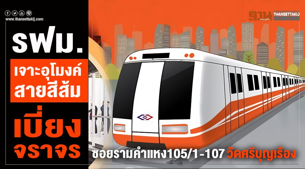 รฟม. แจ้งเบี่ยงจราจรบนถนนรามคำแหง ชิดเกาะกลาง บริเวณซอยรามคำแหง 105/1 – 107 (วัดศรีบุญเรือง) เพื่องานเจาะสำรวจแนวอุโมงค์ โครงการรถไฟฟ้าสายสีส้ม ช่วงศูนย์วัฒนธรรมฯ – มีนบุรี (สุวินทวงศ์) ตั้งแต่วันที่ 24 – 30 มิ.ย.นี้ 4 ทุ่มถึงตี5