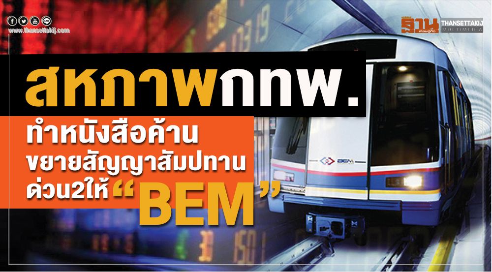 เมื่อวันที่ 27 มิถุนายน 2562 (วันนี้) สหภาพ การทางพิเศษแห่งประเทศไทย(สร.กทพ.) ได้ยื่นหนังสือ ขอคัดค้านการขยายระยะเวลาของสัญญาสัมปทานให้กับบริษัททางด่วนและรถไฟฟ้ากรุงเทพฯ จำกัด (BEM) ทั้งนี้ ตามหนังสือที่อ้างถึงสหภาพแรงานรัฐวิสาหกิจการทางพิเศษแห่งประเทศไทย (สร.กทพ.) ได้มีหนังสือเรียน ประธานกรรมการประธานกรรมการการทางพิเศษแห่งประเทศไทย(บอร์ดกกพ.)และ ผู้ว่าการการทางพิเศษแห่งประเทศไทย(กทพ.) เพื่อขอให้นำควมเห็นความห่วงใยของพนักงาน ผู้บริหารและ สร.กทพ. ไปประกอบการพิจารณาแนวทางแก้ไขญหากรณีข้อพิพาทกับผู้รับสัมปทานและตามหนังสือที่อ้างถึง สร.กทพ. ขอคัดค้านการขยายระยะเวลาของสัมปทานและการดำเนินการการดำเนินการูที่ยังไม่มีความชัดเจนใน เรื่องต่างๆ โดยเฉพะเรื่องการบันทึกบัญชีตามมาตฐานการบัญชีที่ทำให้ กทพ. เสียหาย นั้นสร.ภกพ. ทราบว่าประธานกรรมการกทพ. และผู้ว่าการการทางพิเศษฯยังคงเร่งรีบดำเนินการ