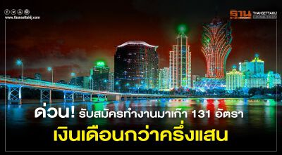 ด่วน! รับสมัครทำงานมาเก๊า 131 อัตรา เงินเดือนกว่าครึ่งแสน