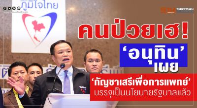 คนป่วยเฮ ! "อนุทิน" เผย "กัญชาเสรีเพื่อการแพทย์"  บรรจุเป็นนโยบายรัฐบาลแล้ว