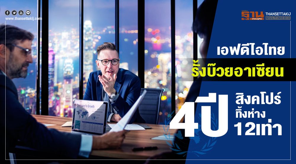 อังค์ถัดเผย FDI เข้าไทยเฉลี่ย 4 ปีรั้งท้ายกลุ่มอาเซียนเก่า ตะลึงสิงคโปร์ทุนไหลเข้ามากกว่าไทย 12 เท่า ขณะอินโดฯ เวียดนาม มาเลย์ ฟิลิปปินส์ไล่กวดตาม เอกชนชี้ผลพวงไทยติดหล่มการเมือง ทำต่างชาติขาดความเชื่อมั่น จี้รัฐบาลใหม่เร่งดันอีอีซี เอฟทีเอไทย-อียู เพิ่มแรงงานทักษะ โรดโชว์ดูดลงทุน