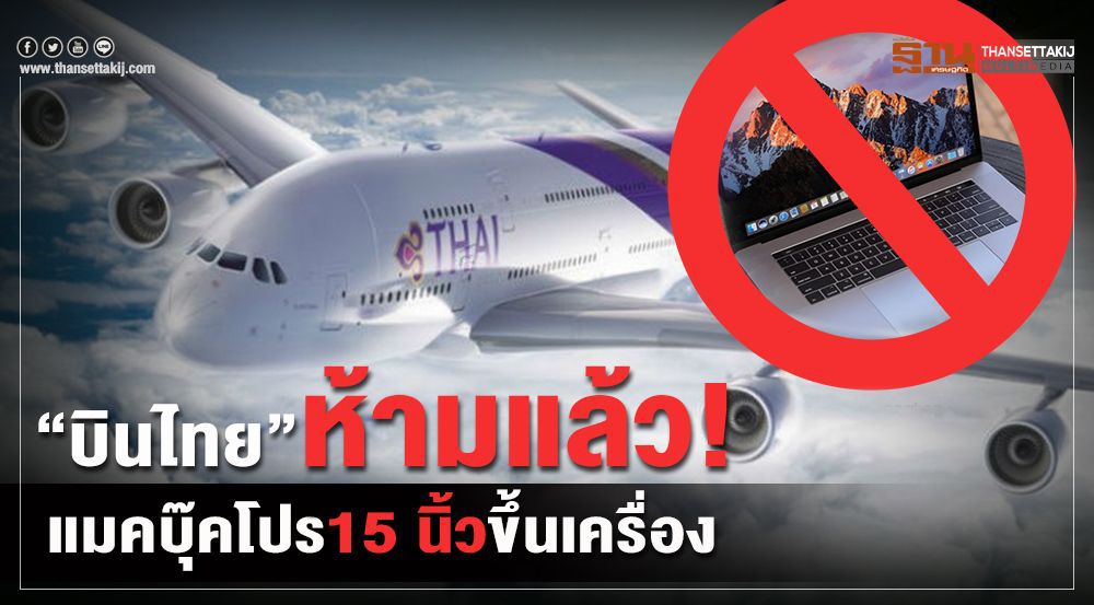 การบินไทย แจ้งเตือนผู้โดยสารงดการนำอุปกรณ์คอมพิวเตอร์พกพา แอปเปิล รุ่นแมคบุ๊คโปร ขนาด 15 นิ้ว ที่จำหน่ายระหว่างเดือนกันยายน ปี 2558 ถึงเดือนกุมภาพันธ์ ปี2560 ซึ่งอยู่ในโปรแกรมการเรียกคืนแบตเตอรี่ของผู้ผลิต โดยงดนำขึ้นเครื่องบิน ทั้งติดตัวหรือโหลดใต้ท้องเครื่องบิน ตามข้อกำหนดของ EASA