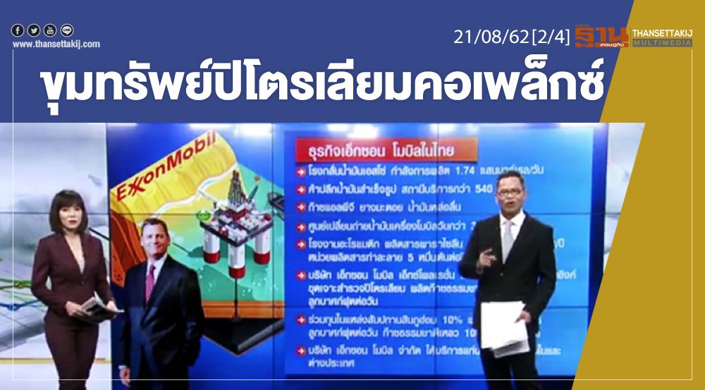 NEWS ROOM ห้องข่าวเศรษฐกิจ 21/08/62 ทุกวันจันทร์-ศุกร์ เวลา 10.30-11.50 น. เจาะลึกประเด็น ขุมทรัพย์ปิโตรเลียมคอเพล็กซ์ เป็นอย่างไรติดตามได้จากรายการ