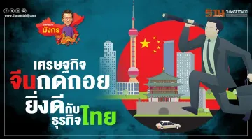 เศรษฐกิจจีนมีอัตราการเติบโตที่ตกตํ่าเป็นประวัติการณ์ในไตรมาส 3 ที่ผ่านมา ทำให้เป็นกังวลในวงกว้าง แต่ธุรกิจไทยไม่ควรตกใจ ผู้เขียนมองว่า “เศรษฐกิจจีนที่ถดถอยเป็นโอกาสให้กับธุรกิจไทยมากกว่าในกรณีที่เศรษฐกิจจีนเติบโตแบบเร่งขึ้น” ซึ่งฟังดูขัดความรู้สึกมาก ขออธิบายว่าปัจจัยที่ทำให้เศรษฐกิจจีนถดถอยทั้งภายในภายนอก ไม่ว่าจะเป็นเรื่องสงครามการค้า ปัญหาฮ่องกง ตลอดจนการปรับโครงสร้างทางเศรษฐกิจของจีนเอง กลับเปิดช่องให้ธุรกิจไทยเข้าไปมีส่วนร่วมได้มากกว่าในกรณีที่จีนเติบโตแบบติดปีก ที่สำคัญเราต้องศึกษาช่องทางเพื่อวิ่งรุกเข้าหาโอกาสนี้ให้ได้