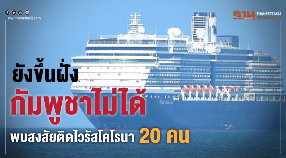 วันที่ 13 ก.พ. 63 “ขแมร์ไทม์” สื่อของประเทศกัมพูชา รายงานว่า ขณะนี้พบผู้โดยสารบนเรือเวสเตอร์ดัม ซึ่งรัฐบาลอนุญาตให้เทียบท่าจอดหลังประเทศไทยปฏิเสธให้เทียบท่าแหลมฉบัง ต้องสงสัยติดเชื้อไวรัสโคโรนา หรือ โรคโควิด-19 (Covid-19) จำนวน 20 คนบนเรือ