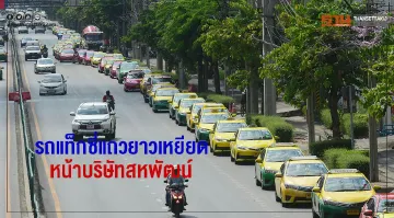รถเท็กซี่แถวยาวเหยียดหน้าบริษัทสหพัฒน์ถนนเพชรบุรีตัดใหม่
