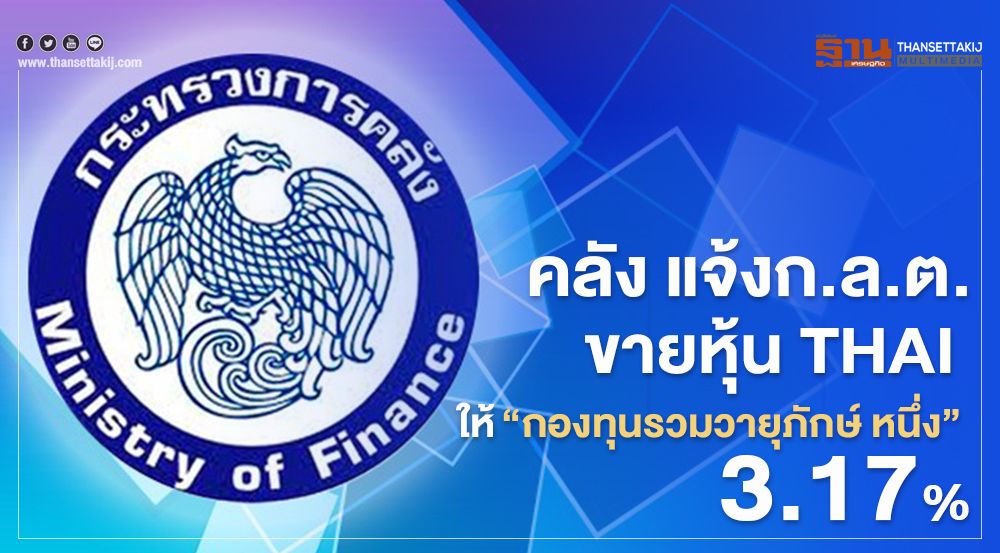 คลัง แจ้งก.ล.ต.ขายหุ้น THAI ให้"กองทุนรวมวายุภักษ์ หนึ่ง"  3.17%