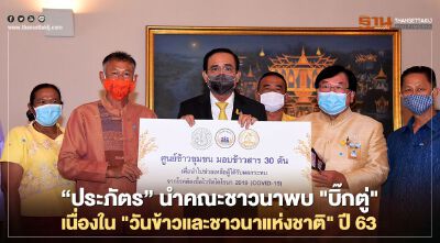 “รมช.เกษตรฯ” นำคณะชาวนาดีเด่นพบนายกรัฐมนตรี เนื่องใน "วันข้าวและชาวนาแห่งชาติ" ปี2563 พร้อมมอบข้าวสาร 30 ตัน สู้โควิด
