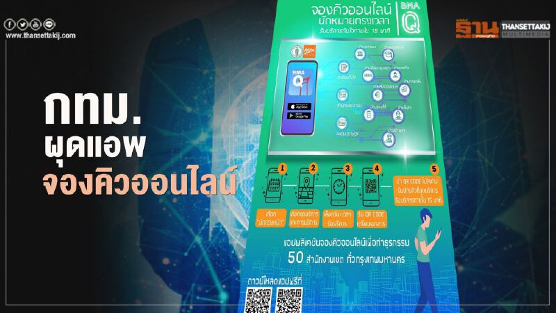 กทม.ปรับปรุงบริการ"BMA Q" แอพพลิเคชั่นจองคิวออนไลน์ บริการงานทะเบียนและงานขออนุญาตต่างๆ หวังช่วยลดความแออัดของสถานที่ และไม่ต้องรอคิวนาน