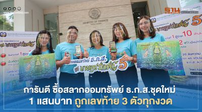 การันตี ซื้อสลากออมทรัพย์ ธ.ก.ส.ชุดใหม่ 1 แสนบาท ถูกเลขท้าย 3 ตัวทุกงวด