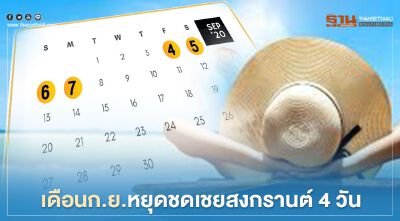 วันนี้ 13 สิงหาคม ผู้สื่อข่าวรายงานข่าวจากที่ประชุมคณะรัฐมนตรี หรือ ครม.เ ปิดเผยว่า ที่ประชุ มครม.มีมติเห็นชอบให้กำหนดวันหยุดราชการในเดือนกันยายนเพิ่มขึ้น 2 วัน ได้แก่ วันศุกร์ที่ 4 ก.ย. และวันจันทร์ที่ 7 ก.ย. เพื่อหยุดชดเชย วันหยุดชดเชยสงกรานต์กันยายน ประจำปี 2563 ดังนั้น หยุดรวม 4 วัน คือ วันที่ 4-7 ก.ย.