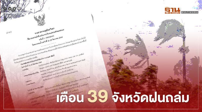 กรมอุตุนิยมวิทยา ออกประกาศเตือน 39 จังหวัดฝนตกหนักถึงหนักมากตั้งแต่วันที่ 21 - 23 สิงหาคม