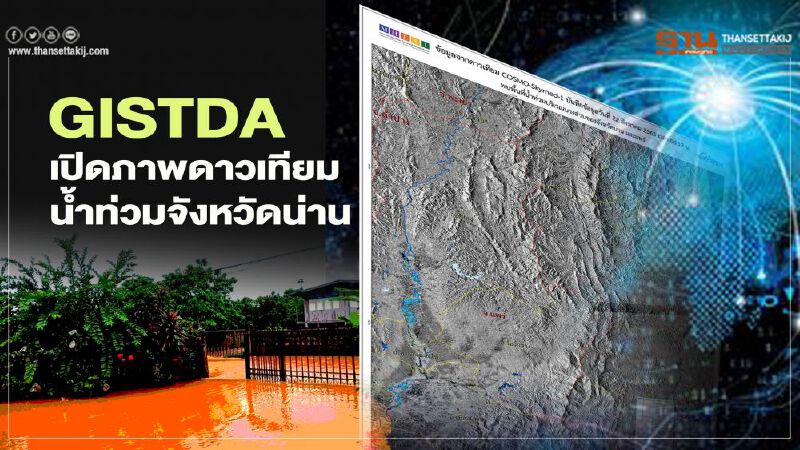 GISTDA เปิดภาพดาวเทียมบางส่วน (สีฟ้า) พื้นที่น้ำท่วมในจังหวัดน่าน