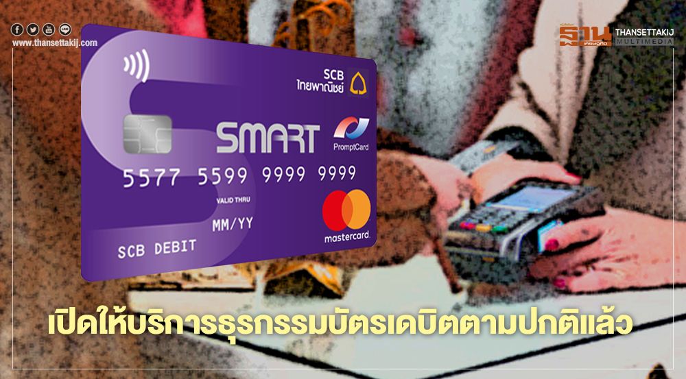 บัดนี้ ธนาคารได้เปิดให้บริการธุรกรรมทุกประเภทของบัตรเดบิตตามปกติแล้ว