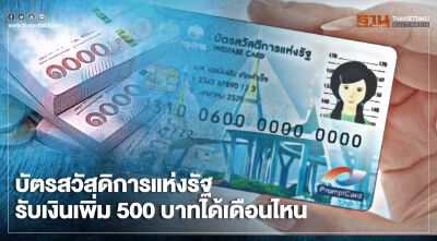 ผู้ถือบัตรคนจนบัตรสวัสดิการแห่งรัฐได้เงินเพิ่ม 500 บาทนาน 3 เดือน