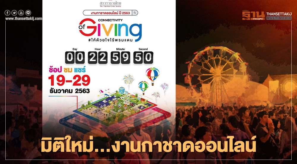 สำหรับงานกาชาดออนไลน์ สามารถคลิกผ่านแพลทฟอร์ม www.งานกาชาด.com หรือ Scan QR code ผ่านสื่อประชาสัมพันธ์ต่างๆ และ Log in ผ่านแอปพลิเคชัน Line, Facebook, E-mail หรือ G-mail ได้ทั้งโทรศัพท์มือถือ แท็ปเล็ต และคอมพิวเตอร์ โดยงานจะมีขึ้น ตั้งแต่วันที่ 19 – 29 ธันวาคม 2563 ตลอด 24 ชั่วโมง