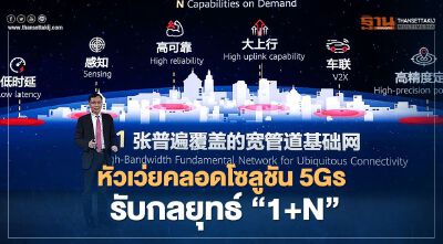 เทคโนโลยี 5G ไม่ได้เป็นแค่เทคโนโลยีไร้สายยุคใหม่เท่านั้น แต่ยังช่วยพัฒนาธุรกิจ อีโคซิสเต็ม และโอกาสทางธุรกิจใหม่ ๆ หากเปรียบเทียบกับเทคโนโลยี 4G แล้ว เทคโนโลยี 5G ยังรองรับการให้บริการในรูปแบบที่หลากหลายรวมถึงรองรับความต้องการเฉพาะด้านได้มากกว่า ทั้งนี้ การเชื่อมต่อระหว่างผู้คนจำเป็นต้องอาศัยแบนด์วิดท์ระดับสูงที่ต่อประสานกัน เพื่อมอบประสบการณ์ระดับพรีเมียมด้วยค่าใช้จ่ายที่ลดลงเป็นอย่างมาก ส่วนการเชื่อมต่อสิ่งต่าง ๆ เข้าด้วยกันนั้นยังจำเป็นต้องทำให้ครอบคลุมทุกพื้นที่เพื่อรองรับการเชื่อมต่อที่เกิดขึ้นเป็นจำนวนมากในอุปกรณ์ปลายทางของ Internet of Things (IoT) นอกจากนี้ ในด้านการเชื่อมต่อในภาคอุตสาหกรรมซึ่งจะถูกนำไปใช้ในระดับประเทศเป็นลำดับต้น ๆ นั้น จำเป็นต้องอาศัยศักยภาพของเทคโนโลยี 5G ในหลากหลายด้าน อาทิเช่น ความยืดหยุ่นสำหรับค่าการอัปโหลดข้อมูลในระดับสูง ค่าความหน่วง (latency) ต่ำ และการกำหนดตำแหน่งด้วยความแม่นยำสูงที่สามารถนำไปใช้ได้ทุกเมื่อ เพื่อตอบรับกับความต้องการที่มีหลากหลายเหล่านี้ หัวเว่ยจึงได้นำเสนอกลยุทธ์ “1+N” เพื่อการพัฒนาสู่เทคโนโลยี 5G ที่สมบูรณ์แบบ และได้พัฒนาโครงข่ายพื้นฐานที่มีศักยภาพสูงให้แพร่หลาย โดยมีแบนด์วิดท์ที่มีความถี่กลาง (Intermediate Frequency – IF) เป็นหลัก รวมถึงความถี่ระดับอื่นๆ เพื่อประโยชน์ในหลากหลายด้านและการซ้อนทับศักยภาพของ ‘N’ ที่สามารถสั่งการได้ตามต้องการ