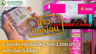 ธ.ออมสิน แจงข่าวแจกเงินปีใหม่500-1,000 บาท เป็นข่าวบิดเบือน