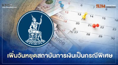 ธปท.ประกาศเพิ่มวันหยุดธนาคาร 12 ก.พ.และ 24 ก.ย.64