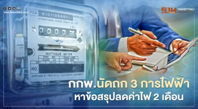 จับตา กกพ.นัดถก 3 การไฟฟ้า เร่งสรุปมาตรการลดค่าไฟฟ้า 2 เดือน