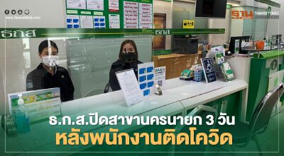 ธ.ก.ส.ปิดสาขานครนายก 3 วัน หลังพนักงานติดโควิด