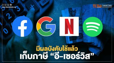 มีผลบังคับใช้แล้ว! กฎหมายเก็บภาษี“อี-เซอร์วิส” จากผู้ให้บริการทางอิเล็กทรอนิกส์ หรือแพลตฟอร์มต่างประเทศ อาทิ Facebook, Google, Netflix, Spotify คาดเพิ่มรายได้เข้ารัฐปีละ 5,000 ล้านบาท