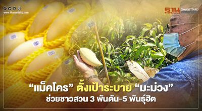 แม็คโคร ตั้งเป้าช่วยชาวสวนระบายมะม่วง 3,000 ตัน เพิ่มขึ้นจากปีก่อน 25% หลังเผชิญมรสุมโควิด ส่งออกไม่ได้ ผลผลิตล้นตลาด เผย 5 พันธุ์ยอดฮิตลูกค้าแห่ช้อป