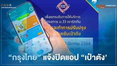 ปิดอีกแล้ว แอปฯเป๋าตัง "กรุงไทย" แจ้งยกระดับ ม.33เรารักกัน เริ่ม 4 ทุ่มคืนนี้