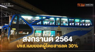 บขส. เตรียมจัดรถโดยสารกว่า 5,000 เที่ยว รองรับผู้โดยสารได้สูงสุดวันละ 1.1 แสนคน ช่วงเทศกาลสงกรานต์ 2564 คาดปีนี้คนเดินทางลดลง 30% หลังโควิด-19 หลังโควิดระบาดรอบ 2