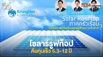 Krungthai COMPASS เปิดมูลค่าตลาด 1.37แสนล้าน “โซลาร์รูฟท็อป” คืนทุนเร็ว 5.3-12ปี แนะเป็นแหล่งรายได้ของผู้ประกอบการอสังหาฯ