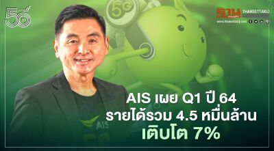 AIS เผยไตรมาสแรกรายได้รวม 4.5 หมื่นล้าน เติบโต 7% เดินหน้าอัดงบลงทุน 3 หมื่นล้าน