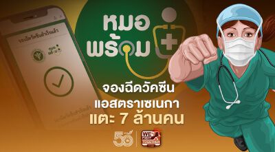 "หมอพร้อม" อัพเดทยอดลงทะเบียนจองฉีดวัคซีนแอสตราเซเนก้าแตะ 7 ล้านราย กทม.750,252 ราย