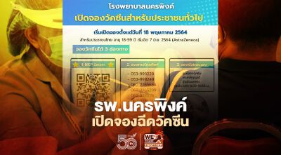 โรงพยาบาลนครพิงค์ เปิด 2 ช่องทางลงทะเบียนฉีดวัคซีนโควิดสำหรับประชาชนทั่วไป