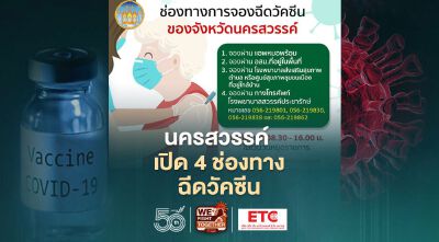 จังหวัดนครสวรรค์ได้ระบุช่องทางลงทะเบียนฉีดวัคซีโควิด ดังนี้