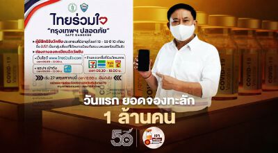 ลงทะเบียนฉีดวัคซีน กทม. 'ไทยร่วมใจ ฯ' วันแรก ยอดทะลักกว่า 1 ล้านคน