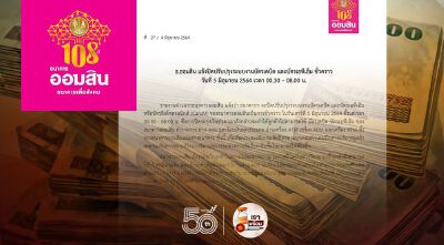 5 มิ.ย.64  ออมสิน ปิดปรับปรุงระบบบัตรเดบิต-ATM ชั่วคราว