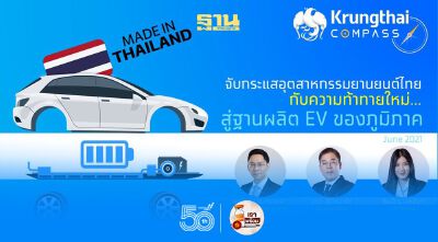 ดร.มานะ นิมิตรวานิช ผู้อำนวยการฝ่าย ศูนย์วิจัย Krungthai COMPASS กล่าวว่า สำหรับประเทศไทยนั้น ด้วยยอดใช้ยานยนต์ไฟฟ้าสะสมในประเทศ ณ สิ้นปี 2563 อยู่ที่เพียง 1.9 แสนคัน หรือคิดเป็น 1% ของยานยนต์ทั้งหมด ถือว่ายังมีขนาดเล็กและอยู่ในช่วงเริ่มต้นเมื่อเทียบกับประเทศชั้นนำอื่นๆ อย่างไรก็ดี ข้อได้เปรียบของไทยในการเป็นฐานผลิตยานยนต์เครื่องยนต์ ICE แบบดั้งเดิมมาอย่างยาวนาน ประกอบกับกลยุทธ์การทำตลาดของผู้ผลิตยานยนต์ OEM ในประเทศที่ยังคงเน้นทำตลาดยานยนต์ไฟฟ้าไฮบริดตามบริษัทแม่ในญี่ปุ่น จะเป็นส่วนเสริมให้ยอดใช้ยานยนต์ไฟฟ้าสะสมในประเทศมีโอกาสแตะ 1 ล้านคันได้ในปี 2571 หรือขยายตัวเฉลี่ยราว 24% ต่อปี จากยอดใช้ยานยนต์ไฟฟ้าไฮบริดที่คาดว่าจะมีสัดส่วนสูงถึง 93% ของยานยนต์ไฟฟ้าทั้งหมด ทั้งนี้ Krungthai COMPASS ชี้ว่ามาตรการภาครัฐที่สนับสนุนทั้งผู้ผลิต ผู้ประกอบการ และผู้บริโภค จะเป็นส่วนสำคัญให้อุตสาหกรรมยานยนต์ของไทยมีโอกาสต่อยอดเป็นฐานผลิตยานยนต์ไฟฟ้าไฮบริดที่แข็งแกร่งของภูมิภาคในอนาคตต่อไป