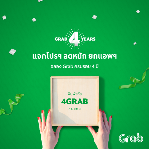 แกร็บ (Grab) ฉลองครบรอบ 4 ปี แจกโปรฯ ลดหนัก ยกแอพ!